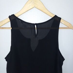 Swoon Small Sheer Black Tank-Faux Leather Trim-Keyhole Back-Flowy-Grunge-Goth