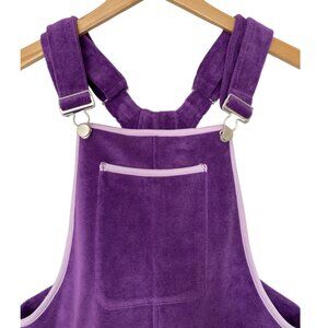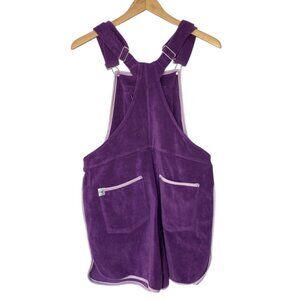 Swoveralls (sweatpants + overalls) Swovie shorts in a terry cloth material. Excellent condition. Super comfy terrycloth shortalls with adjustable straps and six pockets (one secret zippered inside the bib pocket). Very cool retro style overalls that are great for vacation, the beach, or lounging around. Check the measurements in the pictures to ensure you have the fit you'd like. See photos for details. Retro terry purple rain color.