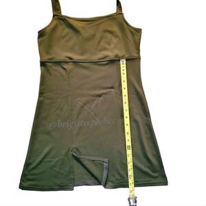 Used once as a tunic. The material is stretchy. There is no size on the dress but it fits my dress form, which is a size 2 / 4.