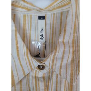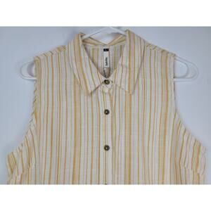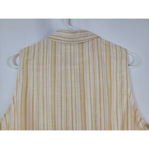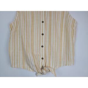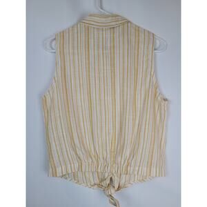 Sybilla Women's Yellow Cream Striped Tie in Front Sleeveless Blouse Sz L