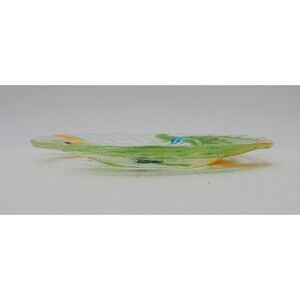 Sydenstricker Fused Art Glass Peach Iris 8-1/2 Inch Salad Plate Green Leaves