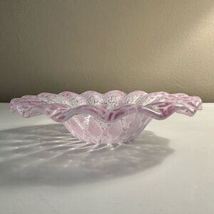 Sydenstricker Glass Pink Daisy Flower Candy Dish