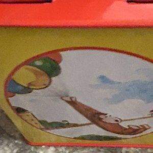 This listing is for a Curious George Jack in the Box and two Curious Geoge Books. The Jack in the Box is vintage dated 1995. It is your typical Jack in the box; crank the handle and out pops George. He is dressed in green. This jack in the box is made by Schyllling. It is very good condition. Also included are two books. A board books. Curious George Goes Fishing and a paperback; Curious George Goes Camping. These books are both in excellent condition46. These items come from a smoke free home.