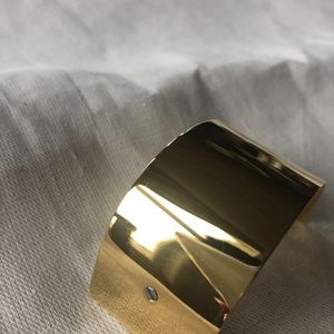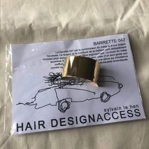 Sleek, curved gold metal barrette designed for a ponytail. Made in France.