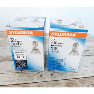 Sylvania 60 Halogen Flood Bulbs 2 Pack Capsylite 60PAR16/HAL/NFL30 Medium Base