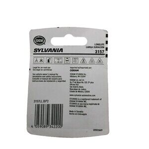 The Sylvania LongLife 3157 27/8.3W Two Bulbs Brake Stop Tail Parking Replace OE Fit is a set of warm white incandescent light bulbs suitable for various lighting applications in cars and trucks. With a wattage of 27W and a color temperature of 3000K, these bulbs provide a bright and clear light output. Offers compatibility with a wide range of vehicles. Manufactured by Sylvania in the United States, these light bulbs come with a 1-year manufacturer warranty and are designed for up to 1,500 hours of bulb life.