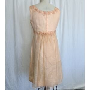 Beautiful peach floral chiffon layer Sylvia Ann vintage dress. great wedding guest dress. great condition.