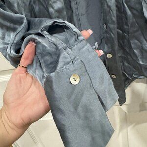 Sylvia Heisel Womens 100% Silk Blouse Size 4 Blue Button-Up Sleeve