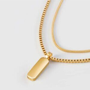 This set combines minimalism and versatility, featuring a glossy polished pendant and a pair of durable, subtle chains. Each chain comes with our signature SG tag and a refined lobster clasp. A true one-size-fits-all accessory that will be a perfect addition to any outfit.