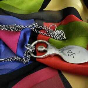 Goddess of Love and Healing with large cabochon amethyst in the center. This was a special order she made for me. It's barely been worn and is in excellent condition. Silvia's Healing Stone Creations is about connecting with Universal Love Energy. Deeply connect with Divine Feminine energy with this Amethyst Goddess Pendant. Amethyst is a protective stone that transforms negative energy into love, enhances intuition and aids connection to the Divine. It increases peace and serenity and heightens meditation and prayer. This stone promotes love, psychic gifts, and intuitive dreams. Amethyst assists in overcoming addictions and making wise decisions. To learn more about Sylvia, please visit her page: https://www.facebook.com/silvia.peluso1