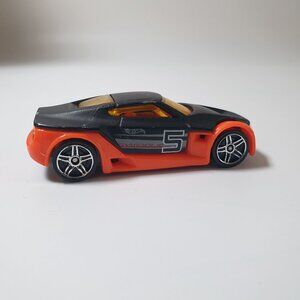 This vintage, no-box, collectable Hot Wheels car model brings nostalgia and fun. With its orange and black metal and plastic design, the Symbolic 5 Mattel Die Cast Car is a must-have for collectors.