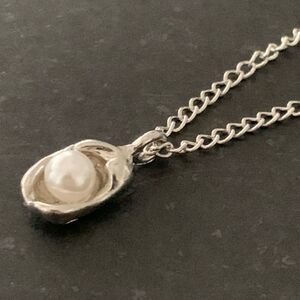 Symbolic Egg in a Nest Pendant Necklace - Silver Tone with Faux Pearl