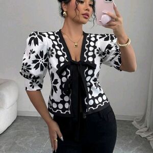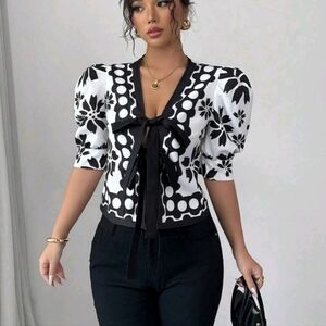 Symmetrically Placed Floral Vacation French Casual Versatile Tie Front Bowknot