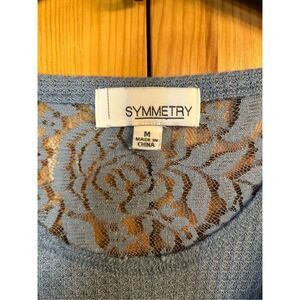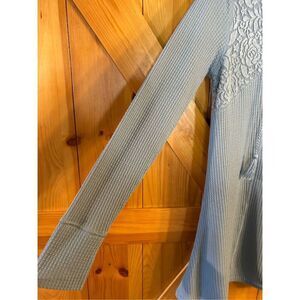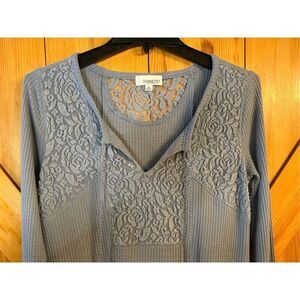 Symmetry Tunic top blue long sleeves v neck front tie waffle knit size medium (8