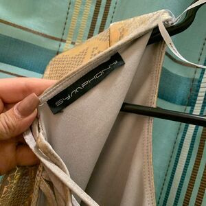 Symphony gold foil snakeskin backless crisscross mini dress one shoulder long size S