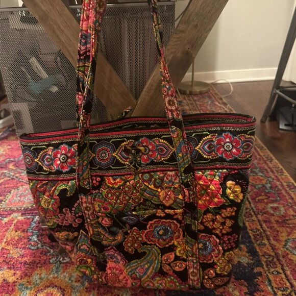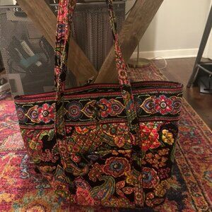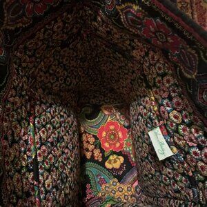 This is a very old Vera Bradley pattern called Symphony In Hue. It was very sought out after for many many years. I used it a handful of times then tucked it away until now. It's a large multi-purpose bag with inner pockets as well as an outer slip pocket and an outer zip pocket. It's still in very nice condition for its age. Still has the original removable cardboard bottom piece intact. Housed in a non-smoking home.