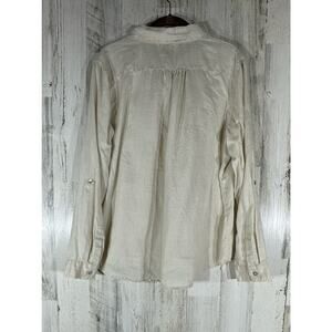 Item: Symple NYC Button Up Top Size Large Cream Off White 100% Linen Roll Tab Sleeves