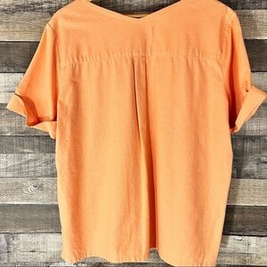 Symple NYC Linen Lagenlook Short Sleeve Orange Top