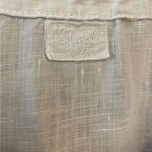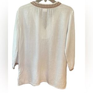 Symple NYC Sz L White 100% Linen Tan Embroidered V-neck Summer Boho Tunic Top