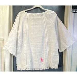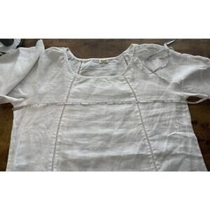 Symple nyc Womens L White 100% Linen Embroidery Sheer Sleeves BOHO Blouse
