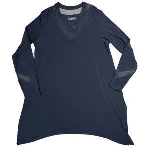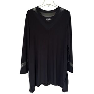 Chic and versatile black tunic. Effortless elegance meets all-day comfort in this Sympli black tunic dress, featuring chic mesh accents and a flattering V-neck—perfect for travel, work, or evening events.