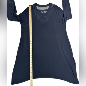 Sympli Black V-Neck Tunic Dress, Elegant Travel-Friendly Wrinkle-Resistant, 14