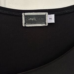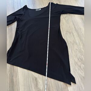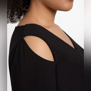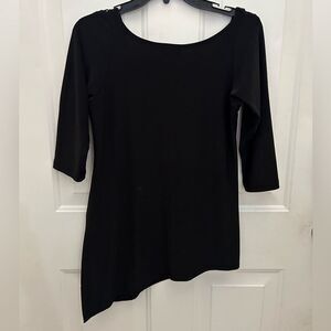 Sympl Focus Tunic Top Black Asymmetrical Hem Cut Out Front Cold Shoulder Detail asymmetrical neckline asymmetrical Hem side slit size 2 made in Canada little front shoulder cut out details half sleeve super cute top Always open to offers bundle and save more! Always fast shipping! Sold out size!! This shirt is still available online for $148 normally $195!