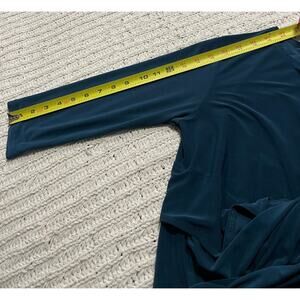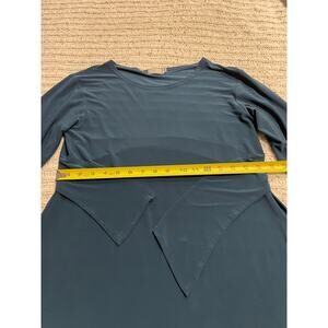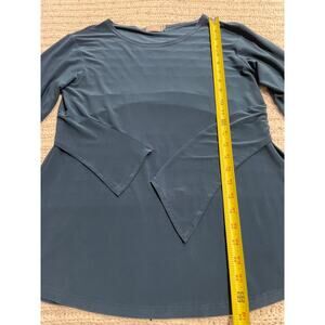 Sympli The Best Slinky Asymmetrical Top Women's Size 8 Blue Made in Canada 05540 Long Sleeve Lagenlook Quiet Luxury Artsy