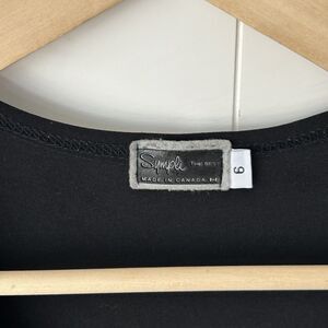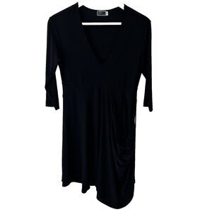 Sympli Tunic Top Size 6 Ruched Asymmetric Black Artsy Pocket V-Neck Lagenlook