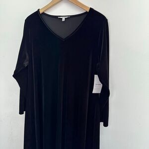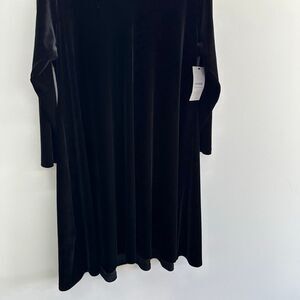 Sympli Women’s Savvy V Neck Black Velour Trapeze Dress