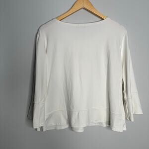 Sympli the Best Women's White Bell 3/4 Sleeve Wide Crew Neck Top Size 16