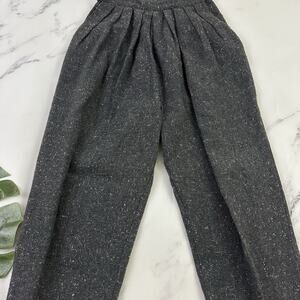 Synari women's vintage 80s gray tweed wool blend pleated high rise wrap waist pants, size 9. They are free from any rips or stains. They measure about 27 inches around the waist, the inseam is about 26 inches and the rise is about 14 inches.