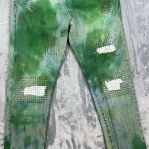 Sync Denim Jeans Mens Size 34 Green Tie Dye Distressed Skinny Jeans