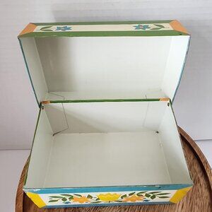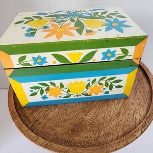 Syndicate Mfg Tin Metal Recipe Box 3x5 Card Holder Trinket Retro Dutch Floral