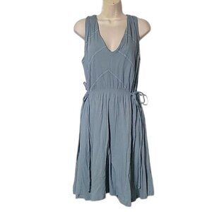 Synergy Organic Cotton Blue Sleeveless V-Neck Midi Dress With Tie Waist Size M