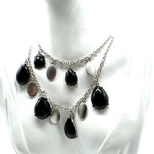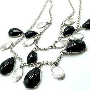 Synthetic Black Cabochon & Silver-tone Double Strand Necklace NWOT