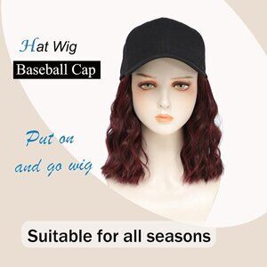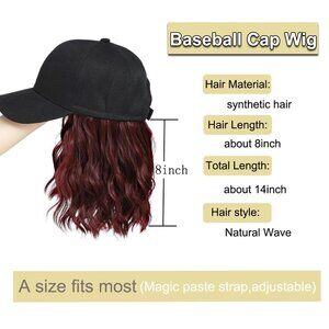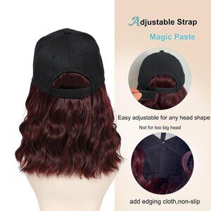 Synthetic Hair Wavy Baseball Cap Wig Burgundy Short Curly Adjustable Eas