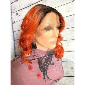 Up for sale is a beautiful CUSTOM COLORED dark roots with Reddish Orange color tones. Synthetic Lace Front Bob Cut Natural Body Wave, Asymmetrical wig with adjustable straps and combs on the cap. This color Fall inspired! Can't go wrong with this one! Perfect for Fall!
