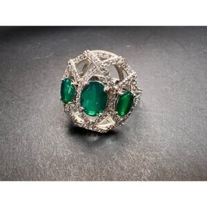 Synthetic emerald CZ sterling silver cocktail ring size 9