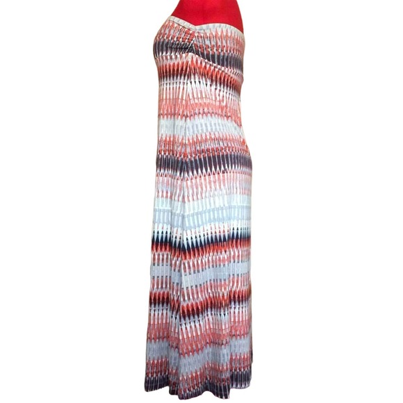 Synthia Rowley Geometric Striped Stretchy Jersey Strapless Rayon Maxi Dress Sz M