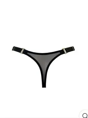 A luxuriously soft sheer mesh thong designed for everyday wear with adjustable straps and mesh thong strap to ensure a comfortable fit. 24k gold plated swan hooks can be used for easy removal when layering with a suspender or ouvert harness. (Size Small)