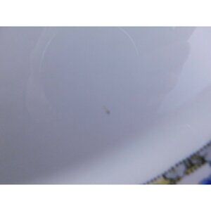 Color: White with multicolor print, gold rim
