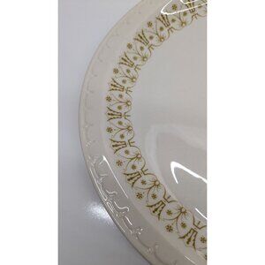 This Syracuse China Econo Rim serving platter features a timeless oval design accented with a delicate bronze pattern. Its durable craftsmanship suits both vintage collectors and practical serving needs. With its 12-inch size, it provides functionality while adding a touch of elegance to any setting.