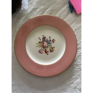 Syracuse China Old Ivory Plate Pink Border, Floral Center Rouge Style VTG EUC