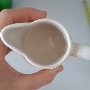 This vintage Syracuse China Syralite creamer pitcher features an elegant orange stripe design. It's perfect for serving cream or milk with style.