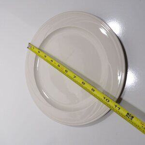 Syracuse China dinner plate, white cream tone, ideal for adding elegance to dining setups. Durable and versatile for various settings.