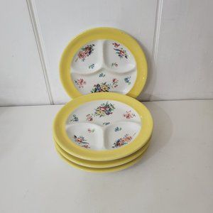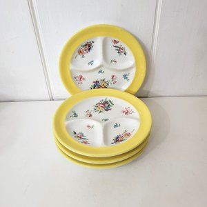 Syracuse China Yellow Floral Divided Dinner Plates Set of Four