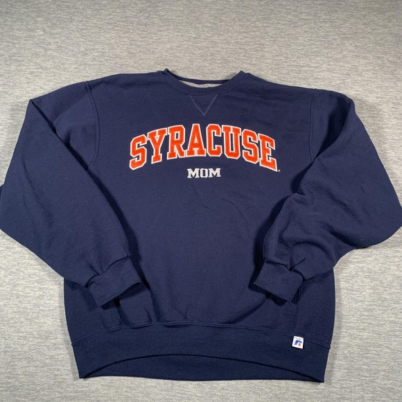 Item: Womens crewneck sweatshirt with front "SYRACUSE" and "MOM" embroidery