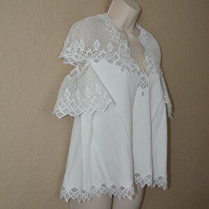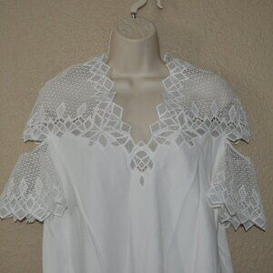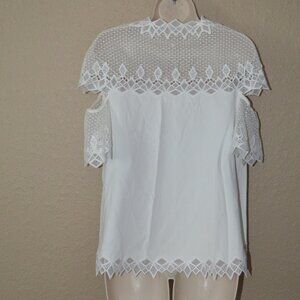 Sz 0 Jonathan Simkhai White Lace Detail Cut Out Shoulder Blouse Top