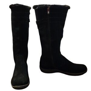 NO BOX! Size 10 Bjorndal "Draylen" black suede boots with faux fur partial lining. Hard rubber outer sole for cold, wet conditions. Super warm! Worn only a couple times-excellent condition! 14.50" High shaft height. Buckle accent near the top edge is ornamental only-no adjust. Casual simplicity.